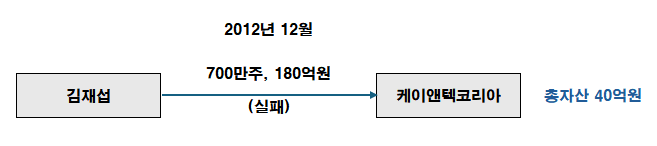 개인채무 상환을 위해 일부 지분을 매각한 후에도 김재섭 회장 부부의 지분매각은 여전히 추진 중이었습니다. 실제로 2012년 12월에 김재섭 회장은 슈넬생명과학 보통주 700만주와 경영권을 180억원에 자원재생업체 케이앤텍코리아로 양도하는 계약을 체결합니다. 하지만 얼마 못가 계약해지가 됩니다. 케이앤텍코리아는 전체 자산규모가 40억원인 회사였습니다. 계약 체결 당시부터 인수자금을 조달할 수 있을지 의구심이 컸습니다. 결국 중도금이 정해진 날짜에 치러지지 않았고, 매도자인 김재섭 회장이 계약해지를 통보합니다.
