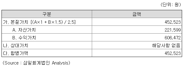 그런데 이건 아니잖아요. 본질가치법으로 나온 가치와 주가로 평가된 가치를 비교한다는 건, 마치 100Kg과 1m를 더하면 101Kg이나 101m가 된다는 것과 비슷하거든요. 그 만큼 말이 안된다고요.