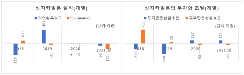 상지카일룸의 경영상황은 그야말로 죽을 쑤고 있었습니다. 지난해 급감한 매출은 올 들어 더욱 부진에 빠졌죠. 상반기 매출이 전년동기 대비 30% 이상 감소한데다 순손실은 매출액의 3배에 가까운 174억원이나 발생했습니다.