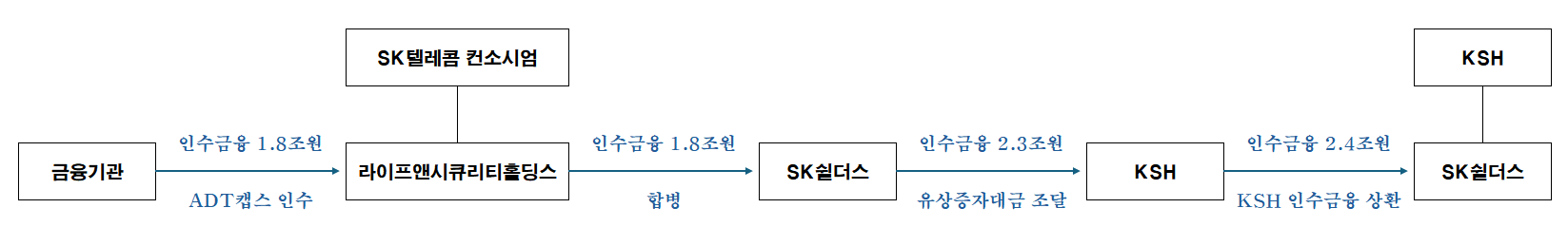 이걸 이해하려면 과거를 되짚어 볼 필요가 있습니다. 2018년 SK텔레콤이 맥쿼리자산운용과 손잡고 ADT캡스를 인수하기 위해 라이프앤시큐리티홀딩스라는 SPC를 설립합니다. 이 SPC가 1조8000억원의 인수금융을 차입해 ADT캡스를 인수했죠. 그 후 SK텔레콤은 정보보안업체인 SK인포섹과 ADT캡스를 합병해 SK쉴더스를 만들었고, SK쉴더스가 라이프앤시큐리티홀딩스와 합병하면서 인수차입금이 SK쉴더스 채무가 되었습니다. 결국 SK그룹이 빚을 내서 ADT캡스를 인수한 후에 그 빚을 피인수회사에 떠넘긴 LBO(Leveraged Buyout)의 구조였죠.