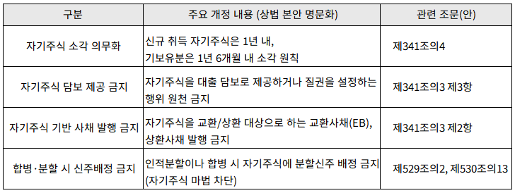 자기주식 소각 의무화로 자사주 마법이 불가능해졌다거나, 주주가치가 상승한다거나 하는 이야기들은 언론에서 워낙 많이 다루어져서 익숙한 내용입니다. 그런데 이런 것들은 실질적으로 정상적인 기업 활동에 아주 중요하지는 않습니다. 실질적인 영향은 오히려 다른 곳에서 더 크게 나타날 수 있습니다.