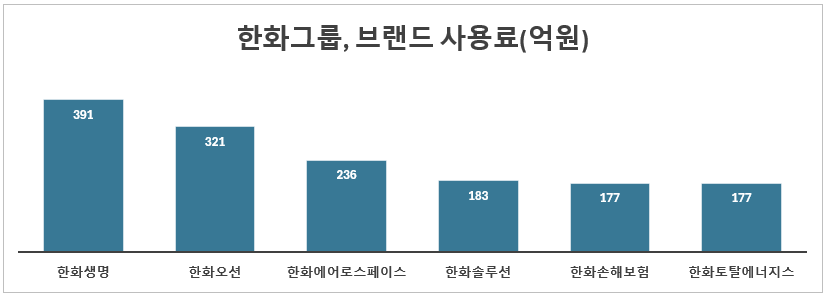 고려아연 지분을 팔아 대략 3700억원을 마련한다고 해도 여전히 3,300억원~4,600억원을 더 채워야 합니다. 다른 자금조달 수단을 더 찾아봐야 하죠. 가장 우선적으로 생각할 수 있는 것은 지주회사는 아니지만, 지주회사 역할을 하는 ㈜한화가 계열사들로부터 받고 있는 브랜드 사용료와 배당수익입니다.