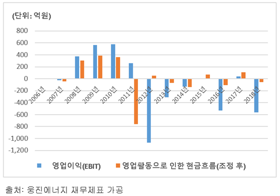웅진에너지의 설비가 돈 벌어주는 역할을 못한 것은 사실입니다. 웅진에너지는 지난해 거액의 손실을 낸 이유가 제품가격이 50% 이상 급락하는 등 업황이 부진해서라고 했습니다. 그게 틀린 얘기는 아닙니다만, 웅진에너지는 지난해 뿐 아니라 돈을 벌어본 기억이 까마득합니다. 썬파워와 결별 이후 웅진에너지는 좀비 기업이었습니다. 늘 밑지는 장사를 했고, 늘 쪼...