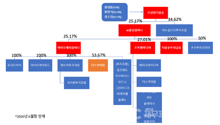 원영식회장이 아이오케이컴퍼니 매각을 결정한 것은 의외입니다. W홀딩컴퍼니에서 아이오케이컴퍼니가 차지하는 비중이 매우 컸거든요. 원영식씨가 진행하는 수많은 인수합병거래는 아이오케이컴퍼니와 초록뱀을 두 축으로 이루어져 왔습니다. 더 정확히는 아이오케이컴퍼니와 초록뱀 아래 여러 투자조합들을 통해 기업을 사고팔죠. 원영식씨 일가는 오션인더블유 지분을 100%...
