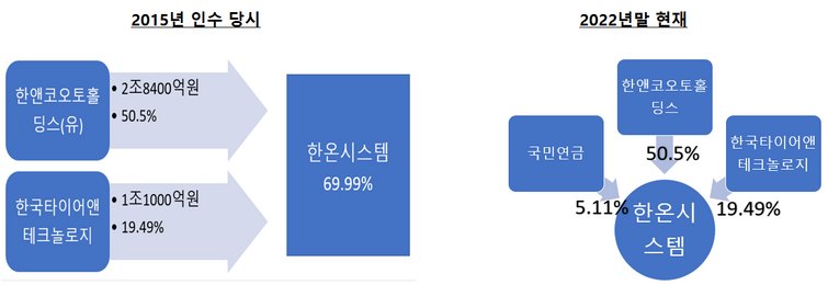 한앤컴퍼니가 한온시스템 인수 계약을 체결한 것은 2014년 12월이지만, 인수가 완료된 건 2015년6월이었습니다. 한온시스템의 배당금을 한앤컴퍼니(정확히는 한앤코오토홀딩스)가 받기 시작한 건 2016년이겠죠. 지난해까지 한온시스템이 지급한 배당총액은 1조2350억원에 달하고 이중 한앤코오토홀딩스) 받은 배당금은 50.5%인 6237억원이 됩니다. 하...