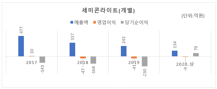 플리트 엔터테인먼트(전 화이브라더스 코리아, 이하 '플리트')를 엔에스엔과 공동 경영하기로 한 세미콘라이트는 LED칩를 제조하는 중소기업으로 코스닥시장에 주권 상장되어 있습니다. 최근 몇 년간 매출이 계속 감소하고 있고, 2년 연속 영업적자를 기록하고 있습니다. 2016년과 2017년 반기에는 외부회계 감사인으로부터 '의견거절'을 받아 상장폐지될 뻔 ...