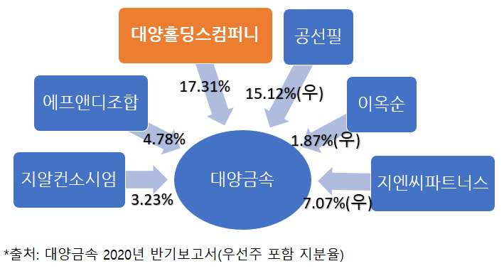 대양금속의 최대주주 대양홀딩스컴퍼니㈜는 2019년 8월 설립된 경영컨설팅업체입니다. 설립할 때는 블랙홀컴퍼니라는 이름을 썼는데 대양금속을 인수하면서 상호를 변경했습니다. 대양금속을 통해 영풍제지를 인수하는 한편으로 거래정지 중이던 코스닥 상장사 연이비앤티를 제3자배정 유상증자 방식으로 인수했지만 연이비앤티는 지난 10월 상장폐지를 피하지 못했습니다. ...